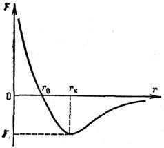 Рис. 1. Зависимость силы взаимодействия двух атомов от расстояния между ними.