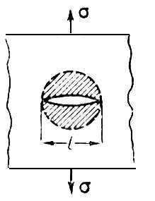 Время затрачивается на ожидание термофлуктуац. зарождения микротрещин и на их рост до критич. размера . Когда к образцу прикладывают напряжение s, он деформируется сначала упруго, затем пластически, причём около структурных неоднородностей, имевшихся в исходном состоянии или возникших при пластич. деформации, образуются большие локальные напряжения (напр., в кристаллах — в результате скопления дислокаций). В этих местах зарождаются микротрещины. Их концентрация может быть очень большой (напр., в нек-рых ориентиров. полимерах до 1015 трещин в 1 см 3). Однако их размеры, определяемые масштабом структурных неоднородностей, значительно меньше . Под пост. напряжением размеры и концентрация трещин растут медленно и тело не разрушается, пока случайно (напр., в результате последоват. слияния близко расположенных соседних трещин) одна из них не дорастёт до критич. размера. Поэтому при создании прочных материалов следует заботиться не столько о том, чтобы трещины не зарождались, сколько о том, чтобы они не росли.