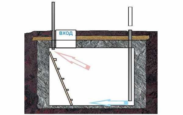 Важно! Вентиляционный канал с ветроулавливателем должен быть поднят выше кровли погреба на 1 метр.