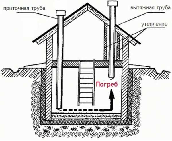 Решая, как устроить вентиляцию в погребе, следует знать, что она может быть принудительной или естественной. Если вентиляция устанавливается в уже готовом погребе, то для обеих труб в его крыше или стенах следует проделать отверстия необходимой величины. Иногда можно заметить, что в погребе возникает застой воздуха и становится погреб более сырым. Проверить наличие тяги можно если поджечь немного сырой бумаги и не дав сильно разгореться потушить. Можно еще расположить кастрюлю на полу погреба и развести небольшой костер. Две трубы, зимой не померзнет нечего там? Раньше у моей бабушки за городом в погребе была одна труба вентиляции, и то помню когда морозы начинались её закрывали.