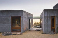Этот высоко открытый дом с видом на океан был построен с использованием толстых бетонных стен, поддерживаемых стальным каркасом.Угловая бетонная конструкция с наклонными внешними стенами, выбранная за ее прочность и устойчивость к эрозии, прекрасно вписывается в холмистый сельский пейзаж. Добавление обширных стеклянных панелей от пола до потолка создает взаимодействие между внутренним и открытым пространством, демонстрируя панорамный вид на океан. Центральный двор, открытый бассейн и внешние опоры были созданы с использованием различных оттенков, текстур и отделок из бетона.