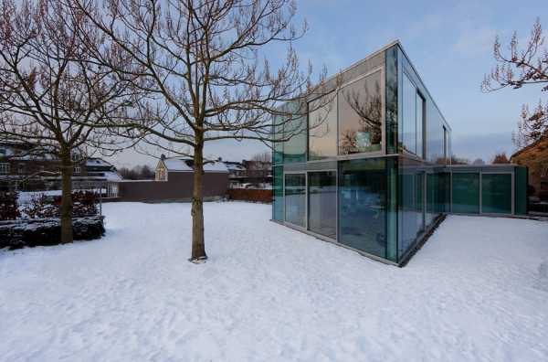 Оригинальная и интересная конструкция с голубыми стенами. Расположен «H House» в Маастрихте (был создан для одной творческой пары). Его конструктивная открытость фасада так и привлекает внимание к внутреннему убранству. Так, здесь гармонично и элегантно сочетается прозрачное и непрозрачное стекло вместе с раздвижными и фиксированными деталями, поэтому сооружение «играет» светом по-разному, в зависимости от времени года и суток.