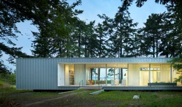 Проект прозрачного дома Стюарта Пара с видом на залив Peconic в штате Нью-Йорк