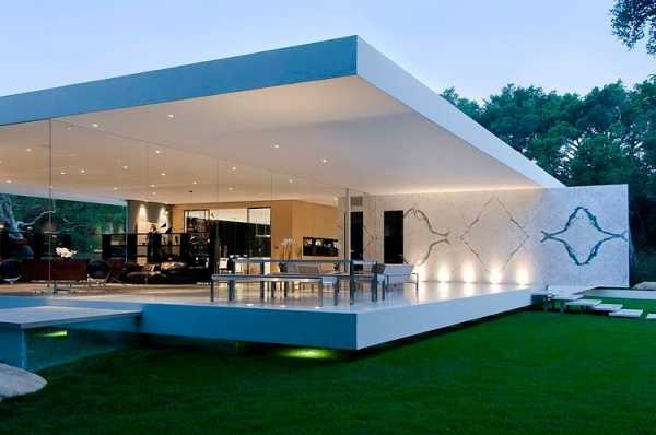 Проекты стеклянных домов редко предусматривают изготовление всех его элементов из стекла, а вот отдельные детали — очень даже часто. Стеклянные стены не только выглядят необычно, но и обеспечивают максимальное проникновение света с улицы. Такое же сложно сказать о традиционных окнах. Живя в таком доме, Вы сможете любоваться окружающей природой и даже облаками, если закажете стеклянную крышу. Сами комнаты будут казаться визуально более просторными.