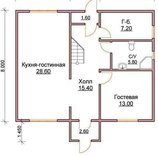 Проект одноэтажного дома из пеноблоков 8 на 8