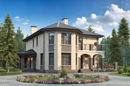 Дома с эркером с каркасной круглой или квадратной формы также будут оригинально смотреться. Такие проекты домов выполняются только специалистами, т.к. малейшая допущенная ошибка может привести к непрочным несущим конструкциям.