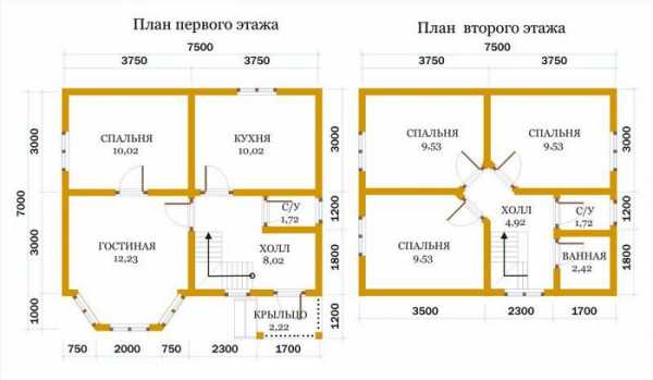 | Высота помещений | Высота 1 этажа — 2,5 м, высота 2 этажа — 2,4 м | ||