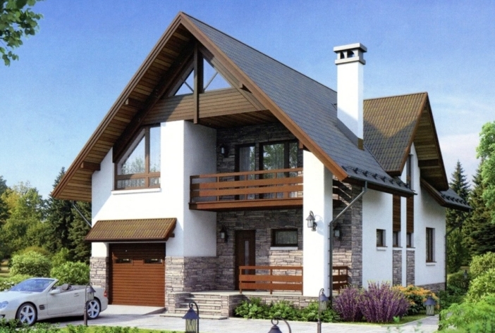AS-2423 — проект дома из газобетона с мансардой и балконом