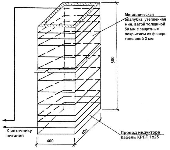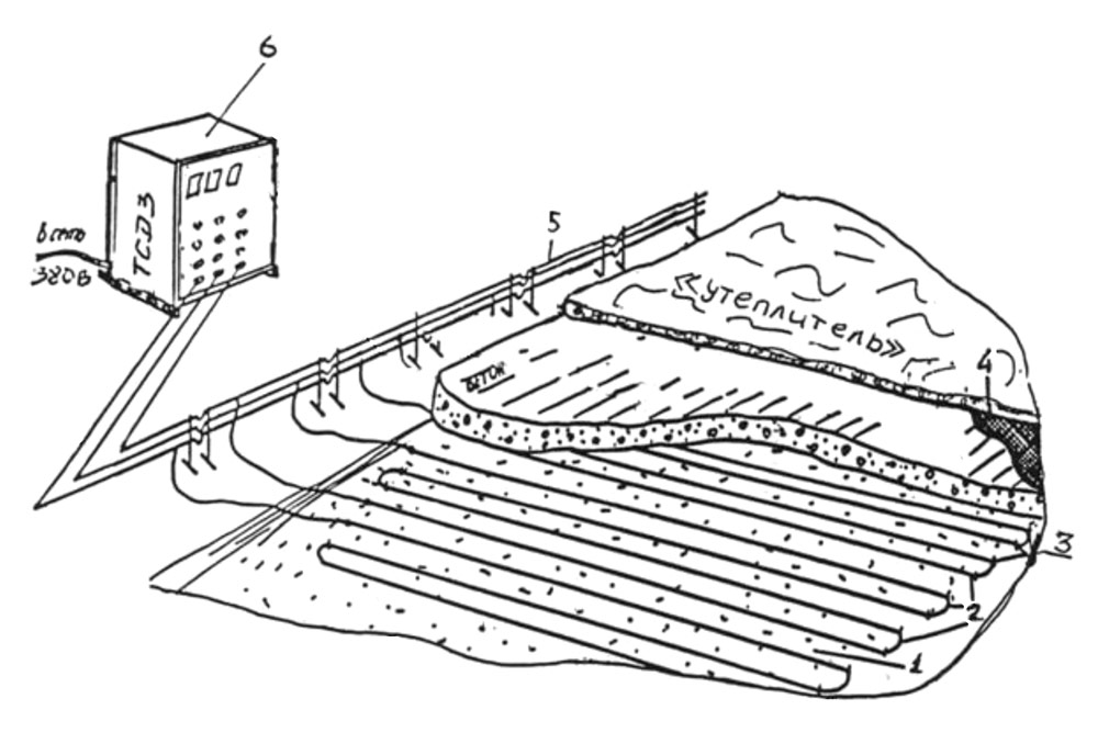 В зависимости от температуры воздуха с понижающего трансформатора подаётся нагрузка на петли и начинается обогрев, но структура бетона при этом не изменяется, зато значительно увеличивается скорость застывания раствора.