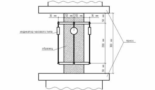 Схема испытания пенобетонных образцов.