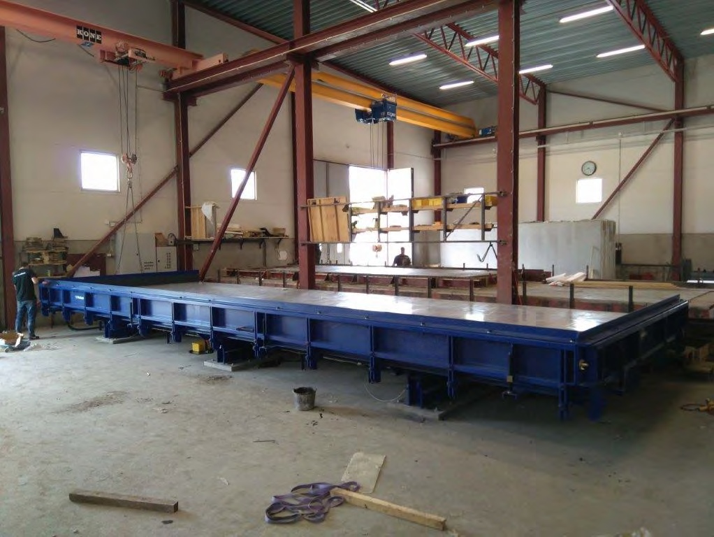 Поворотные столы предназначены для изготовления широкой номенклатуры непреднапряженных изделий для строительства: трехслойных наружных стеновых панелей, внутренних перегородок, элементов лифтовых шахт и вентканалов, балконных плит, диафрагм жесткости и пр.
