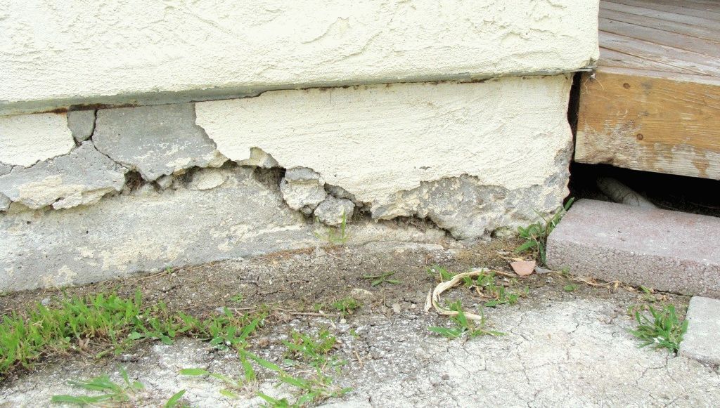 • Треснувший, сломанный или поврежденный фундамент.