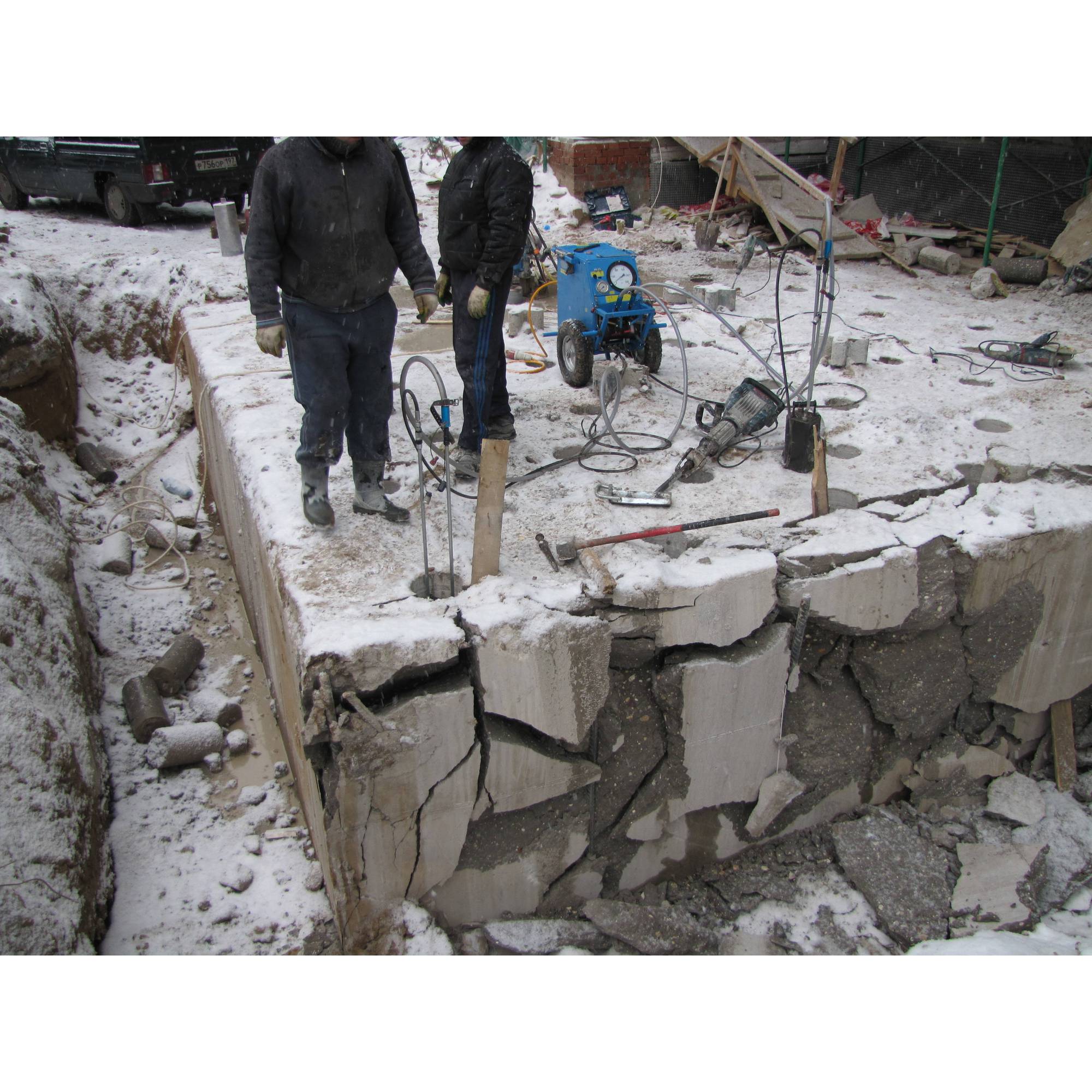 После фиксации можно приступать к демонтажу разрушившегося кирпичного фундамента.
