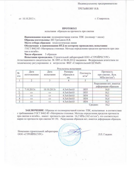На основе проведенных исследований составляется акт испытаний бетона, в нем указываются все показатели материала.