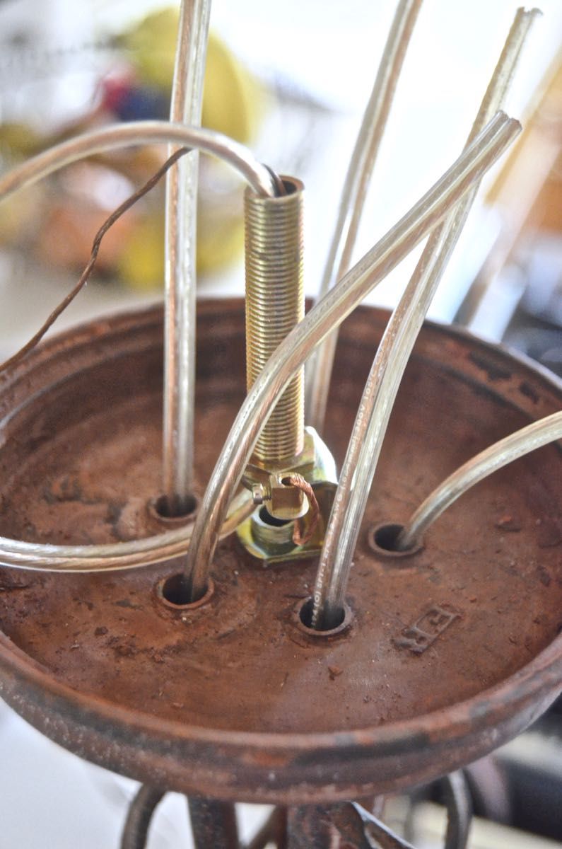 Провода внутри люстры / atcharlotteshouse.comЕсли светильник не проверяли на работоспособность в магазине, перед установкой обязательно нужно убедиться в отсутствии короткого замыкания и пробоя на корпус. Действуйте так: