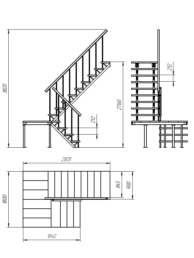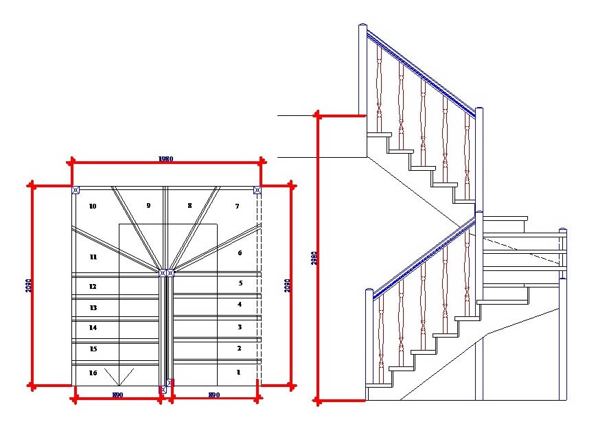 Это основные требования исходя из которых производится дальнейший расчёт. Лестница с площадкой может быть с укороченным первым маршем что позволит сэкономить пространство. Все размеры фиксируются на чертеже и в обязательном порядке проверяются при непосредственном монтаже конструкции.
