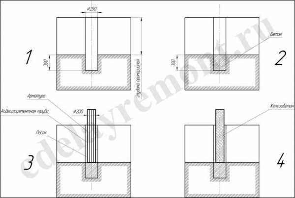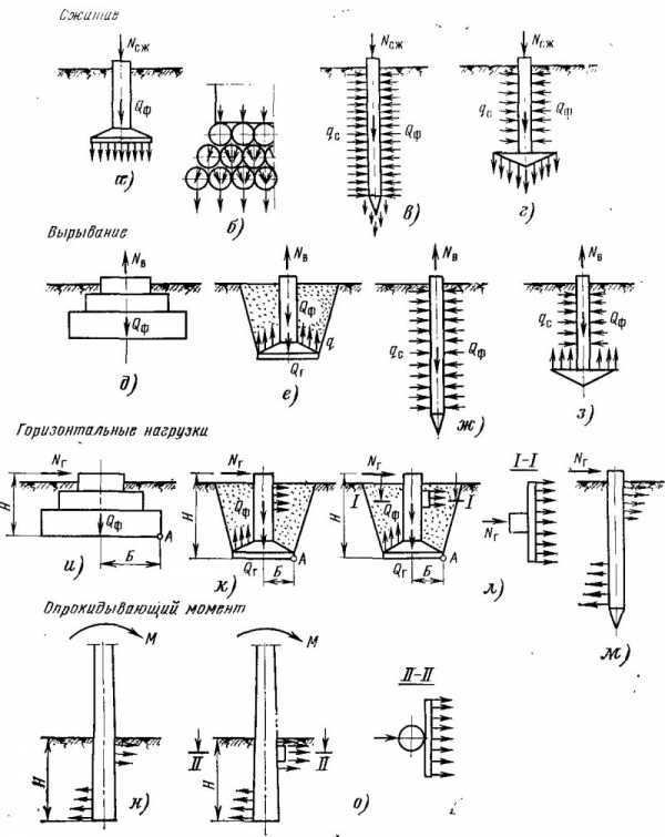 Можно пойти в другом направлении – установить буронабивные сваи с расширением внизу диаметром 0,5 м. В этом случае площадь подошвы каждой опоры составит: 3,14×0,5×0,5/4=0,2 м2