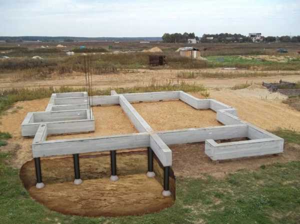В зависимости от того, каким оказались значения расчетной площади подошвы фундамента (с привязкой к рельефу местности), выбирают конкретный тип основания для дома. Для приведенного выше примера расчета лучше всего подойдет заглубленный ленточный фундамент. Если же приходится строить дом чуть ли не на болоте, то надежнее заливать плиту. В целом же, выбор есть между такими основаниями, как:
