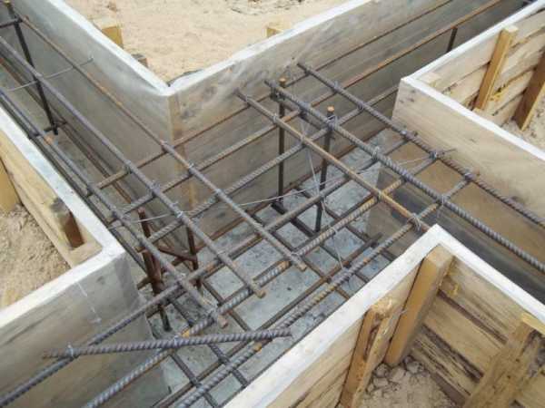 Для ленточных фундаментов применяют два армирующих пояса и арматуру толщиной до 12 мм. При наборе каркаса следует помнить, что вертикальные и поперечные прутья подвергаются меньшей нагрузке, чем продольные.