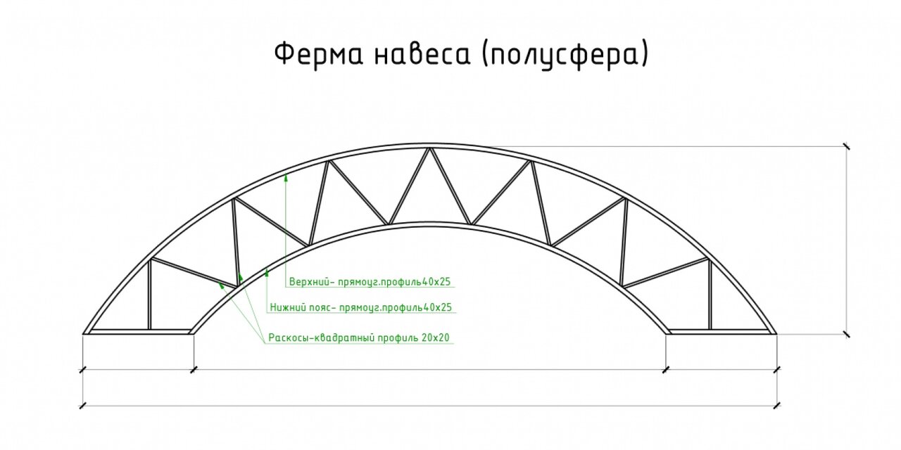 Планируя строить арочные навесы из поликарбоната, расчет фермы выполняют по геометрии конструкции и инженерных особенностей.