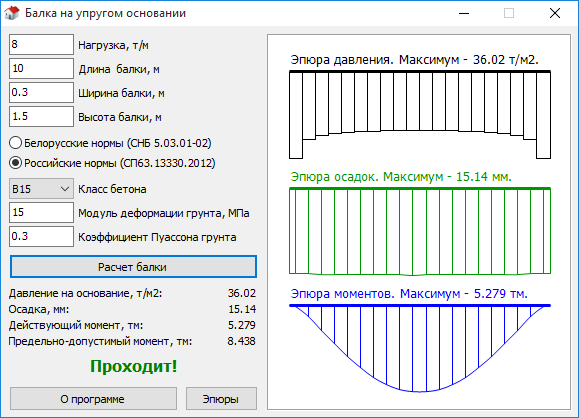Калькулятор балки на упругом основании также рассчитывает изгибающий момент, поперечную силу, прогиб и опорное давление по всей длине балки и представляет эту информацию проектировщику в виде серии графиков.Они показывают проектировщику с первого взгляда, где именно вдоль балки возникают максимальные силы. Они также позволяют проектировщику видеть тип нагрузки, которой подвергается балка, и наличие областей отрицательного опорного давления, например, которые могут быть важны при проектировании бетонной плиты.