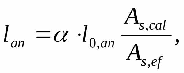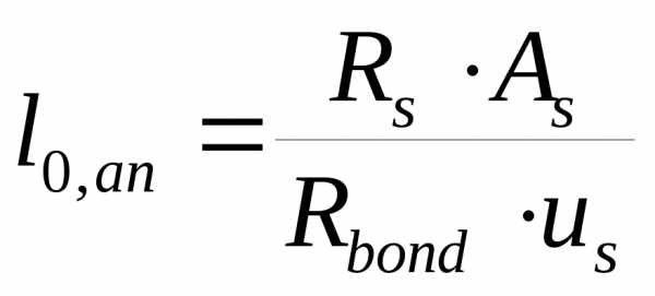 При определении расчетного сопротивления сцепления арматуры с бетоном Rbond принимаются следующие значения коэффициентов: 1=2,5 (для класса арматуры А400) и 2=1 (для 20). Подставляя в формулу базовой длины анкеровки l0,an