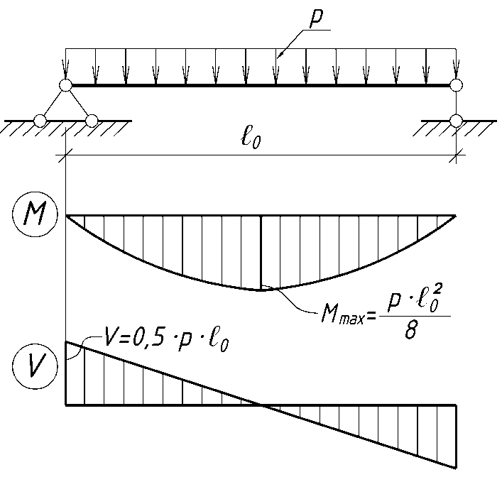 Такая опора (и ее расчетная схема) называется шарнирно-неподвижной: шарнирной потому, что она допускает поворот сечения на опоре, и неподвижной потому, что не допускает никаких линейных перемещений конца балки.