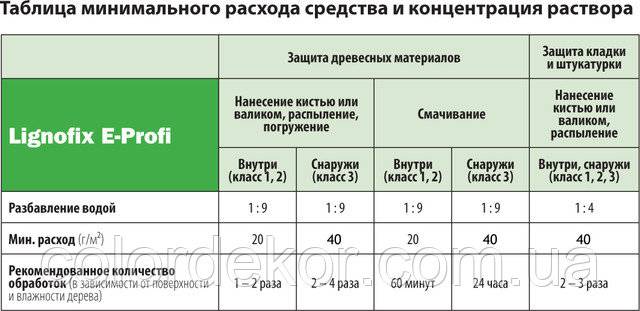 Нормативный показатель расхода материала для защиты древесины всегда указан на упаковке продукта. Производитель указывает среднее значение, полученное опытным путем в лаборатории во время проведения технических испытаний.