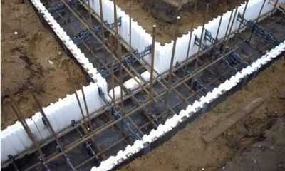 На грунтах с не очень высокой несущей способностью, на пучнистых почвах или под тяжелые дома, часто ленточные фундаменты делают с подошвой. Она передает нагрузку на большую площадь, что придает большую стабильность фундаменту и уменьшает величину просадок.