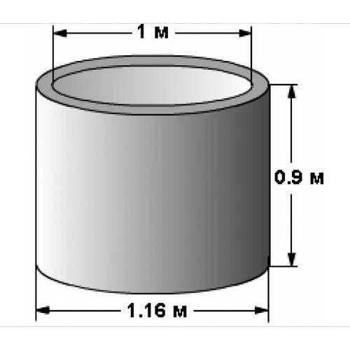 Объем одного кольца с внутренним диаметром 1,0 метр составит – 0,7 м куб. (0,5х0,5х3,14х0,7=0,7065).