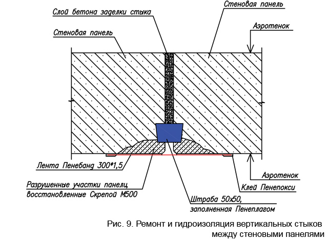 В таком случае железобетонный короб делится на вертикальные швы шириной 2-3 сантиметра, заполненные гидрофобным упругим герметиком.
