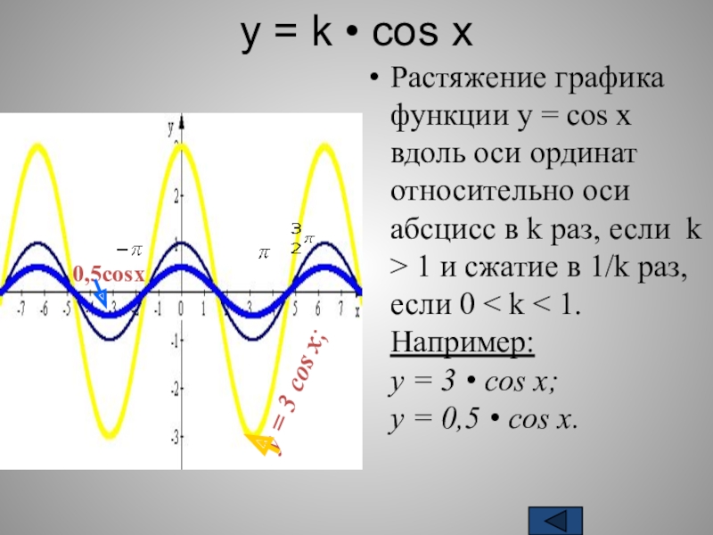 - график функции $y = f \left(\frac{x}{2}\right)$ растягивается в 2 раза по оси OX(←)