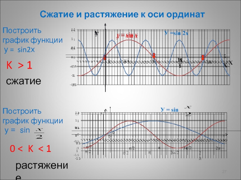 Иначе говоря, чтобы построить график функции y = kf(x), где k < 0, можно сначала построить график функции y = -kf(x), где -k > 0, а затем отобразить его симметрично относительно оси Х.