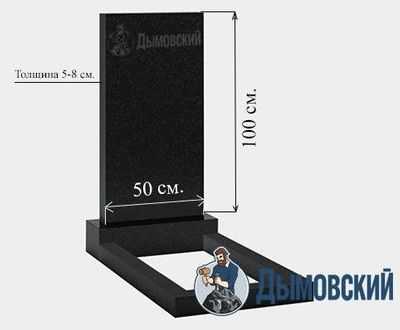 Стандартные размеры памятников с вертикальной ориентацией стелы– 100х50, где 100 – это высота надгробия, соответственно 50 – ширина. Не стоит забывать и про третий показатель – толщину. Для стандартных — это 5-8 сантиметров. Постамент для такого изделия – 15х60, толщина 15-20 см. Специалисты нашей мастерской помогут подобрать оптимальный размер памятника.