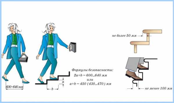 Формула проектирования лестничной конструкции и рассчет ступеней, подступенка