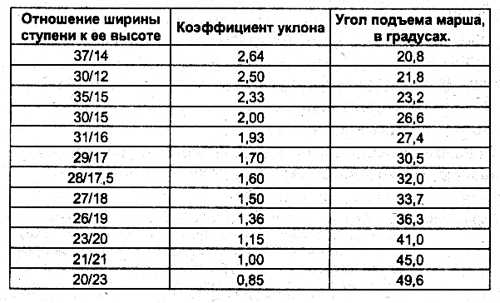 - шаг ступеней и уклон марша;