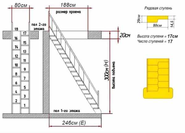 Данный параметр также является очень важным, так как влияет на удобство и безопасность эксплуатации подъемного строения. Он влияет и на выбор параметров ступеней.