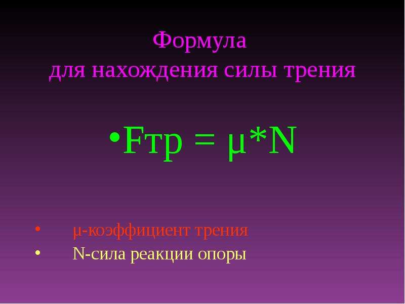 Возникает сила в результате того, что поверхности, если рассмотреть под микроскопом, не являются гладкими, как кажутся. Определяется сила трения по формуле: