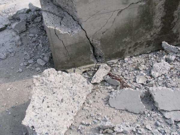 Пример участка где фундамент поддается вибрационным нагрузкамВблизи дорог часто фундаменты домов разрушаются от вибраций. Таким нагрузкам не подвергаются дачные дома. В городе тяжёлый транспорт проезжая, постепенно разрушает его.