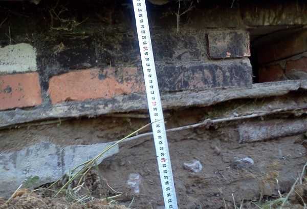 Просадка в первую очередь наблюдается у самого основания постельного камня фундамента под домом.