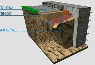 Утепленную отмостку строят на неустойчивых грунтах. Применение утеплительного материала не дает замерзать грунту, что исключает разрушающее давление на конструкции строения и неравномерное вспучивание. Лучше применять теплоизоляционный материал, который не впитывает влагу. Это может быть, к примеру, экструдированный пенополистирол, который укладывают между главными слоями отмостки.