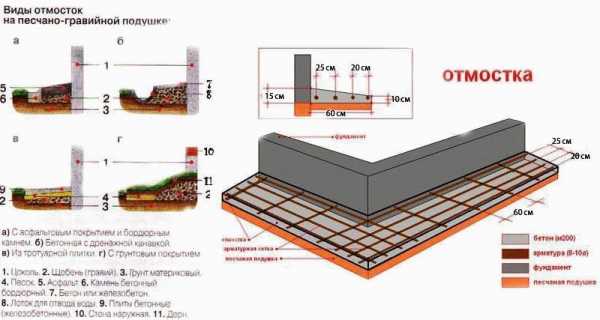 Схема бетонной отмостки.