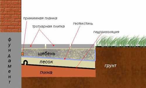Схема размещения слоев отмостки.