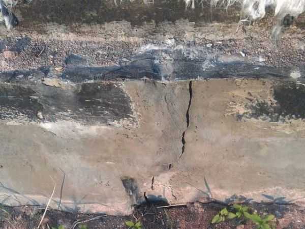 Трещина в монолитной ленте- В бетоне появилась небольшая трещина. Такое происходит в результате смещения и просадки. От мастера требуется установить, продолжается ли еще процесс и в каком направлении фундамент проседает. В зависимости от скорости просадки будут зависеть применяемые меры.