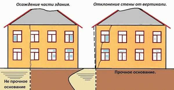 Внутри здания могут наблюдаться перекосы проёмов окон и дверей приводящие к затруднению притвора створок и полотен. Возникновение щелей и трещин в перегородках. Появление изменения уровня напольного покрытия.