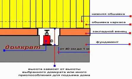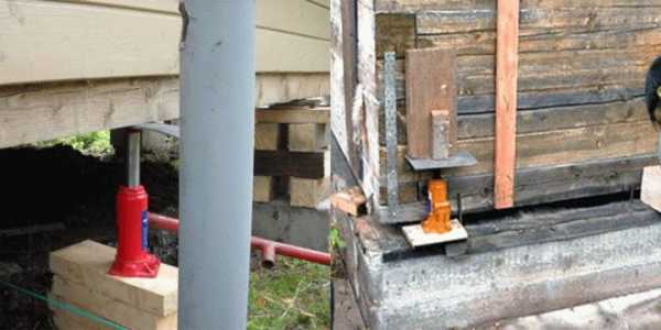 Дом поднимают на домкратах и подкладывают под него временные подпорки