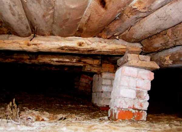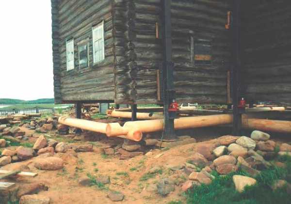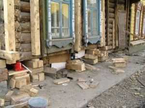И так, первое. У деревянных домов, особенно старых, обычно малый вес, и потому при постройке зачастую используются довольно слабые фундаменты. В иных случаях дом и вовсе может стоять на нескольких брёвнах или камнях.