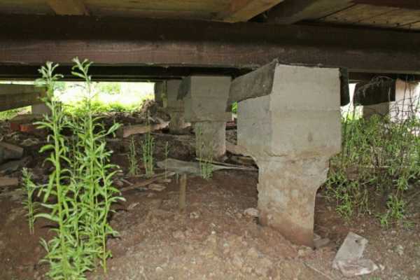 - Разрушение столбов влагой, из-за чего те теряют свою прочность, трескаются, строение неравномерно проседает.