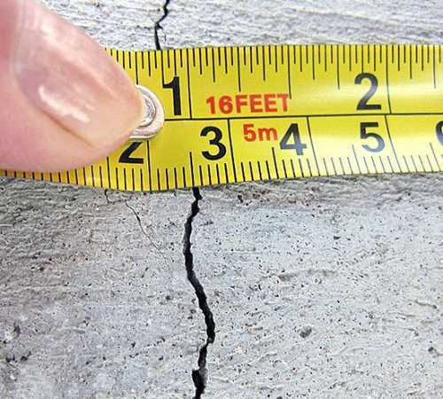 - большие трещины размером раскрытия более 0,3 мм;