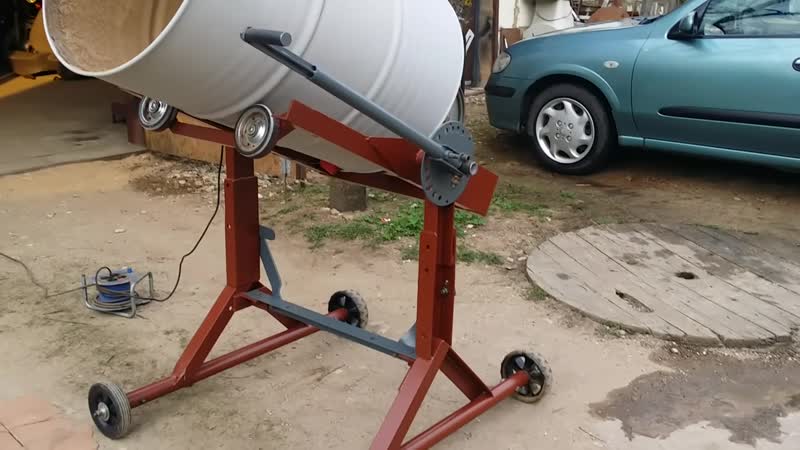 Посмотрите самодельный простой барабанный бетоносмеситель емкостью 55 галлонов